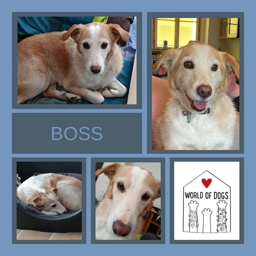 BOSS je roztomilý, asi čtyřletý psí kříženec menší až střední velikosti. Váží přibližně 16 kg. Zachráněn byl z "tábora" v Sarajevu. Občas může být trochu nedůvěřivý, ale je to klidný pejsek plný lásky. Miluje mazlení od lidí, kterým důvěřuje, a je zvyklý na ostatní pejsky i kocourka.Ideální domov: Vzhledem k jeho občasné bázlivosti a obezřetnosti by byl vhodnější domov bez malých dětí. Nejraději by našel svůj domov tam, kde by byl v bezpečí a měl dostatek klidu. Momentálně čeká na svou novou rodinu v dočasné péči. Je dobře socializovaný a zvyklý na bydlení v bytě.Schopnosti a dovednosti: BOSS umí chodit na vodítku a cestovat dopravními prostředky.